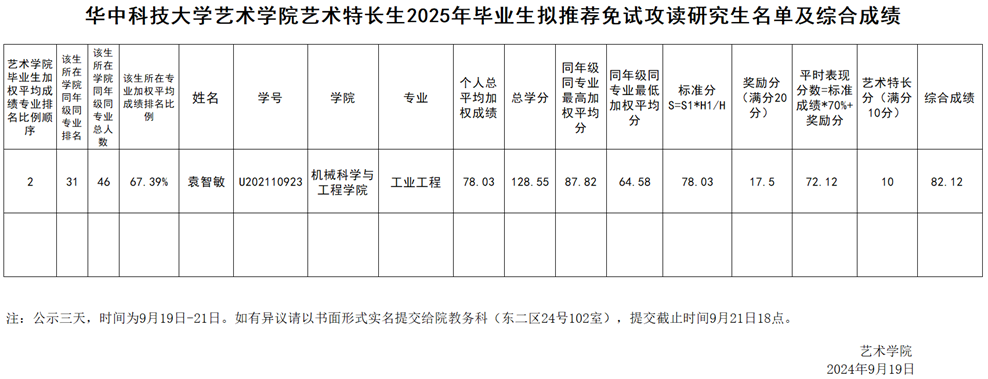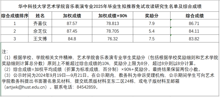 根据公司本科生院《关于做好公司2025年推荐优秀应届本科毕业生免试攻读研究生工作的通知》、《永利3044集团官网2025年音乐表演专业推荐优秀应届本科毕业生免试攻读研究生工作实施办法》、《永利3044集团官网2025年艺术特长生推荐优秀应届本科毕业生免试攻读研究生工作实施办法》的精神,现对2025年拟推荐免试攻读研究生名单及综合成绩进行公示(见下表)。