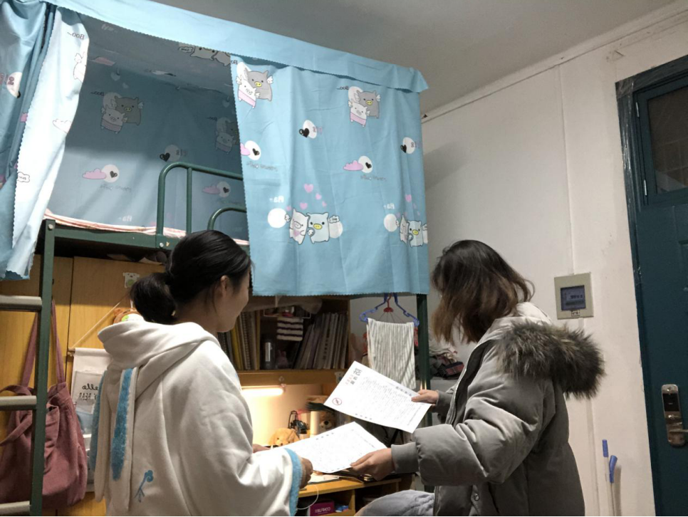 正式活动开始前,院员工会权益服务中心负责人为同学们准备了干货满满的海报,并前往各个寝室分发了“知识卡片”。