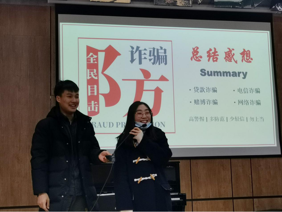 在此次防诈骗宣讲暨知识竞赛活动中,结合着具体案例分析,同学们对如今存在的诈骗方式有了更深入的了解。年末将至,骗子也纷纷摩拳擦掌,就等着出来“冲业绩”了。希望同学们能擦亮双眼,牢记“六个一律,八个凡是”,提高自我防范意识,真正做到“筑梦成长,平安华中大”。