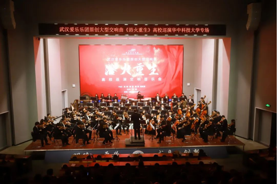 乐谱的叙事与抒情,在指挥与乐团各个声部的完美配合下,展现得淋漓尽致,弦乐与管乐间的对话与唱和,鼓与钵的力量动人心魄,竖琴的点缀撩动心弦,传达出英雄的武汉、英雄的中国人民不屈的意志,风雨同舟、患难与共的精神。在听交响乐时,走进自我的内心——体验乐曲带给我的思考和感受,或者走进作曲家的内心——体验作曲家在这段音乐中蕴含的情感,是一件美妙的事。艺术来源于生活,又拔高生活。以抗疫为背景创造了一首规模庞大,叙事完整,抒情立体饱满,气势恢宏的交响曲,这样的艺术走进校园,更能涤荡我们的心灵,激发我们的爱国之情。