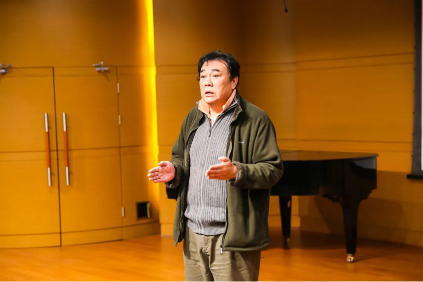 2020年11月22日下午,华中大戏剧团邀请国家话剧院一级演员梁国庆老师在东十二楼副楼302音乐智慧教室,给在场热爱戏剧表演的一众师生们,带来了一场意义非凡的戏剧沙龙活动。