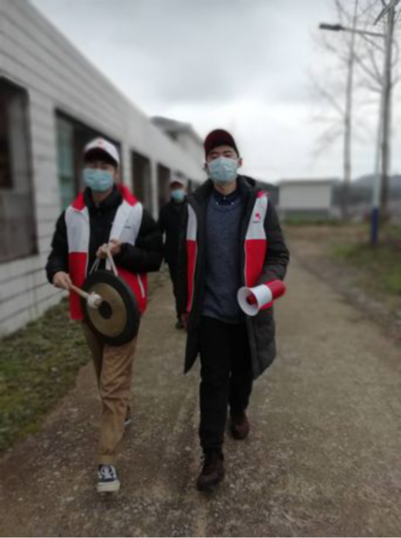 我发现,村里的干部人数非常少,以包保来说,平均一个干部要包保60多户人家,工作量非常大,于是我自愿加入村里的锣鼓宣传队,进行防疫和防火知识的宣传,步行7.5公里,足迹遍布村里的每一个角落。