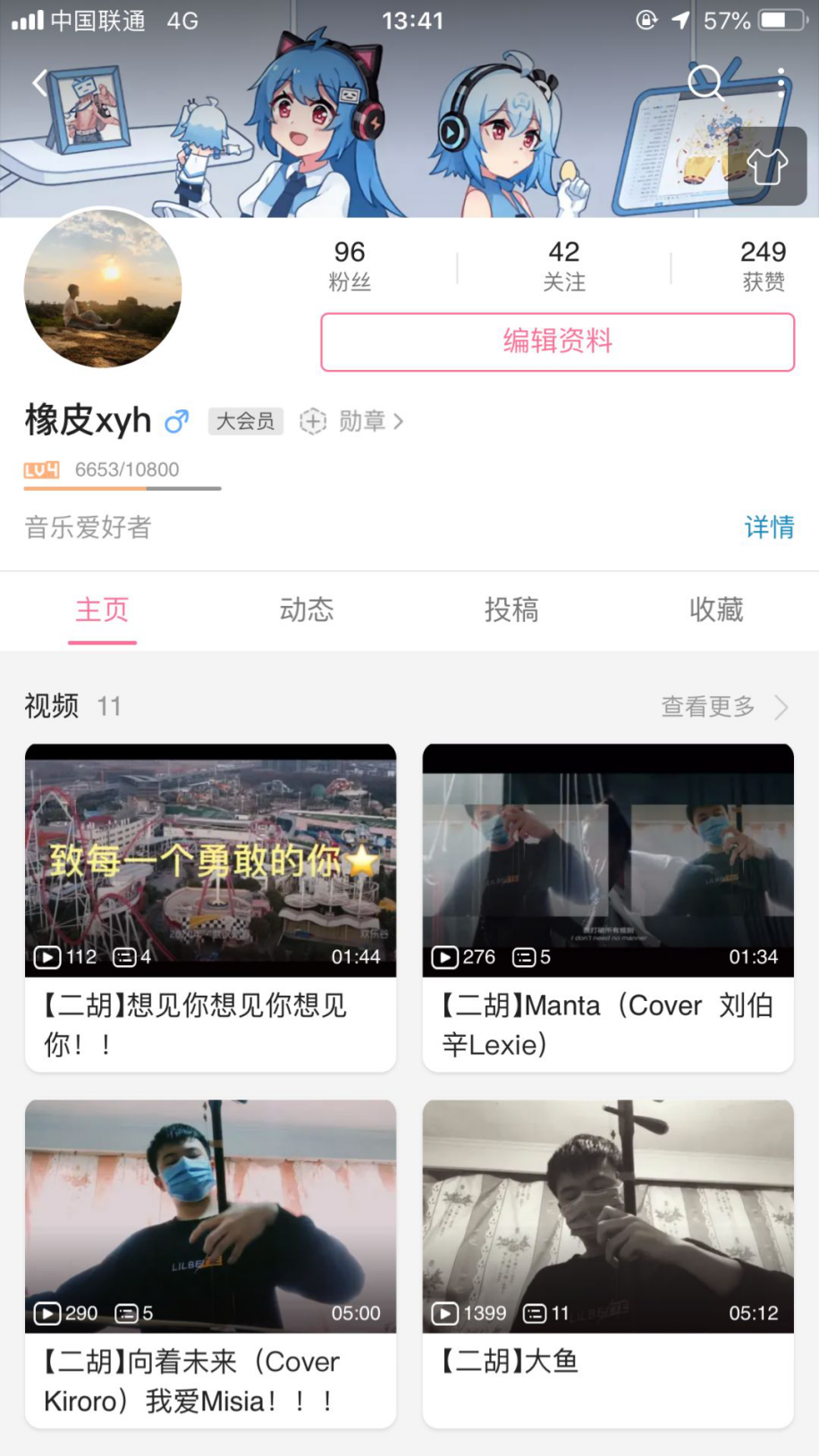 目前我的投稿都是流行音乐的二胡翻奏,通过自己编配和声、录制剪辑视频来对歌曲进行新的诠释,总播放量已经突破5500+,不多但也算是一种认可吧。